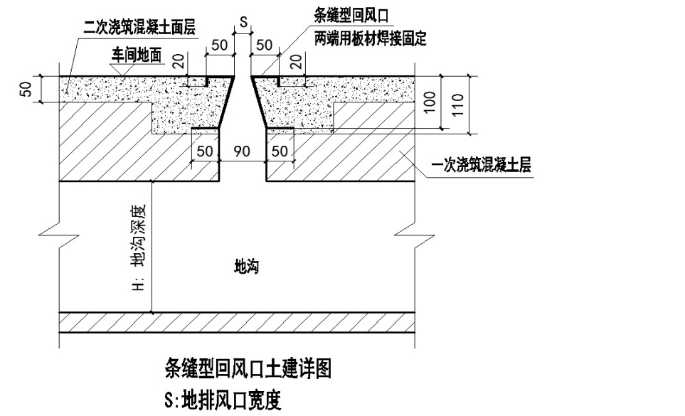 3、 地溝回風口: Return air outlet in trench