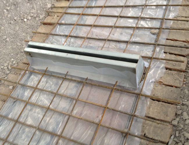 地溝回風口安裝后實物圖(該回風口采用混凝土一次澆注成型)Actual sample of air return outlet in trench during construction